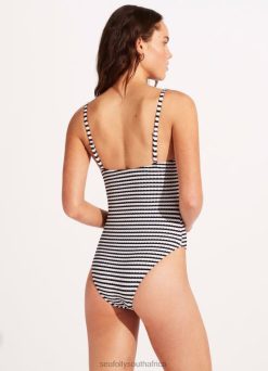Swimwear Black 6XZD4162 Women Seafolly Sorrento Stripe Bustier Bra One Piece