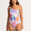Swimwear White 6XZD445 Women Seafolly Under The Sea One Shoulder One Piece