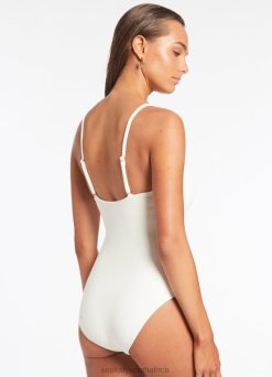 Swimwear Cream 6XZD4121 Women Seafolly Isla Rib Minimal Tank One Piece