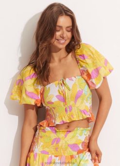Swimwear Limelight 6XZD4740 Women Seafolly Palm Springs Shirring TopLime Light