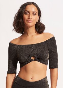 Swimwear Sepia 6XZD4624 Women Seafolly Poolside Twist Ring Crop Top