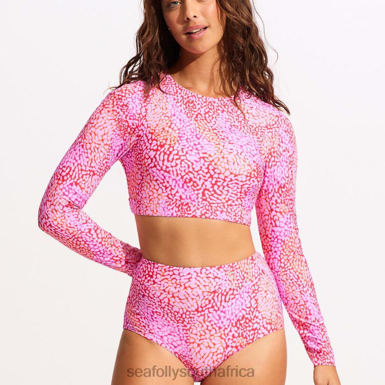 Swimwear Fuchsia Rose 6XZD4402 Women Seafolly Sea Skin Long Sleeve Crop Rashie