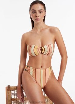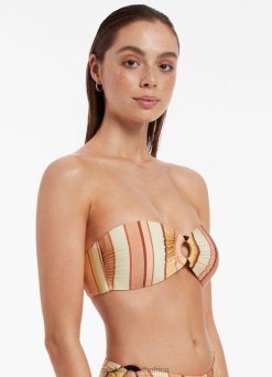 Swimwear Marigold 6XZD4450 Women Seafolly Fira Stripe Trim Bandeau Bikini Top